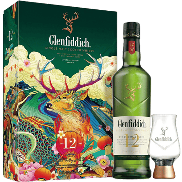 格蘭菲迪 12年單一麥芽威士忌(凱恩聞香杯禮盒)
