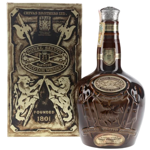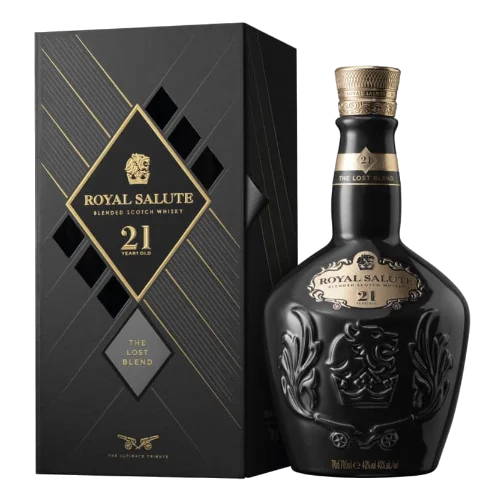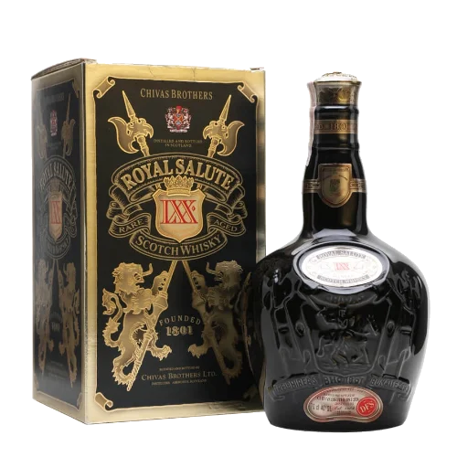 皇家禮炮 LXX 21年(Royal Salute LXX 21 Years Old Blended Scotch Whisky)是品牌推出的特殊黑樽版本,採至少21年熟成的蘇格蘭調和威士忌,瓶身為標誌性的黑色瓷罐(Black Flagon)設計,視覺辨識性強,兼具品牌經典與限量收藏價值。此款融合熟成深度與罕見包裝,是威士忌收藏圈中具潛力的標的。