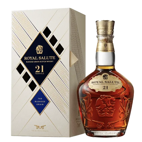 皇家禮炮 21 年王者之鑽(Royal Salute 21 Years Old Blended Grain Scotch Whisky)是品牌首次推出「穀物款」21 年熟成之調和威士忌。此款酒液展現豐富的果香、堅果與橡木甜香,瓶身以晶透玻璃/特別設計瓶身呈現,具備明確與其他21年款區隔的版本特色。其定位為高階調和穀物款,在收藏與市場認知上具備一定稀有性與話題性,是值得關注的酒款。