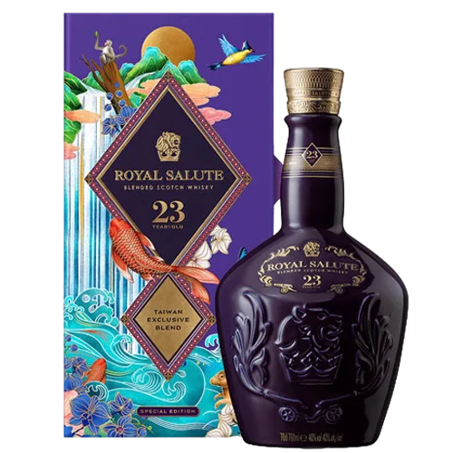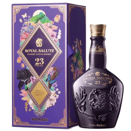 Blended Scotch Whisky) 是品牌推出的高階調和威士忌款,採至少23年熟成的酒液調配,並在台灣推出專屬「福爾摩沙」限定包裝。此款融合熱帶水果香氣(如鳳梨、芒果、香蕉)、龍眼乾氣息及東方美人茶尾韻,瓶身設計呈現東方文化與皇家典雅交融合的樣貌。