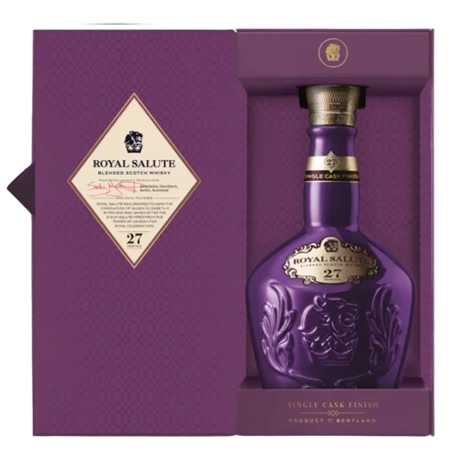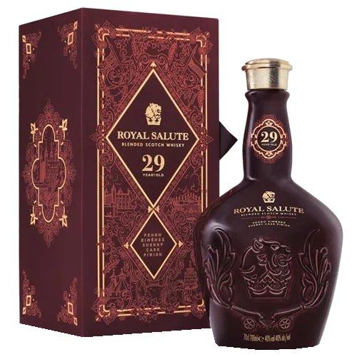 皇家禮炮 28 年(Royal Salute 28 Years Old Blended Scotch Whisky)為品牌推出的高年份調和款之一,尤其以「Kew Palace Edition」等限量版本較為知名。28年熟成的調和威士忌融合品牌經典風格與花園靈感香氣,酒液呈現熟梨、紫羅蘭、蜂蜜與輕煙尾韻。此款因年份較高、版本稀有,具備明顯收藏價值,適合資深酒藏者或高端贈禮使用。