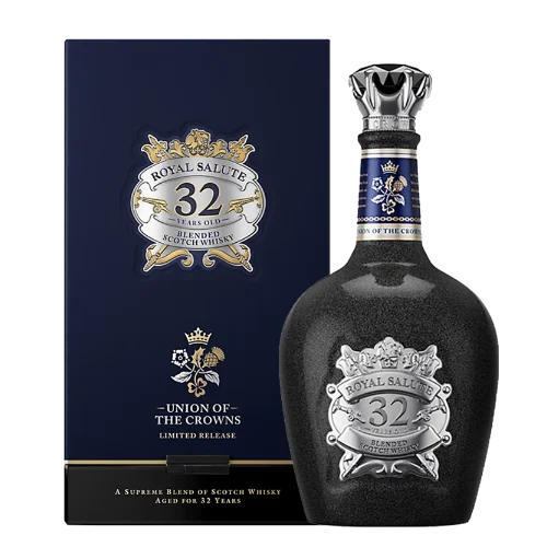 Blended Scotch Whisky)是一款以英國王室象徵珠寶為靈感設計的高階限量調和威士忌。酒液至少熟成 32 年,匯聚來自蘇格蘭五大產區的稀有酒款,瓶身與禮盒以「英國王室徽章珠寶(The Honours of Scotland)」為視覺主題。風味層次豐富,香氣包括成熟梨、橙皮、太妃糖、淡淡黑巧克力;入口則為蜜餞桃子、焦糖太妃、肉桂與橡木,餘韻綿長。此款因為酒齡高、版本稀有、主題設計具典藏屬性,是藏家追捧的對象。