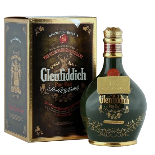 格蘭菲迪 18年 綠瓷瓶(The Glenfiddich 18 Years Old Green Ceramic Decanter)來自蘇格蘭 Speyside 產區,酒款陳年 18 年,裝瓶於 43% ABV,並以綠色陶瓷瓷瓶(由英國 Spode 製作)呈現,是該酒廠「Ancient Reserve/Special Old Reserve」系列中的高階款。酒體展現熟蘋果、蜂蜜、烤穀物與橡木香氣,結構豐厚、餘韻悠長。此版本瓷瓶包裝具設計感與收藏價值。