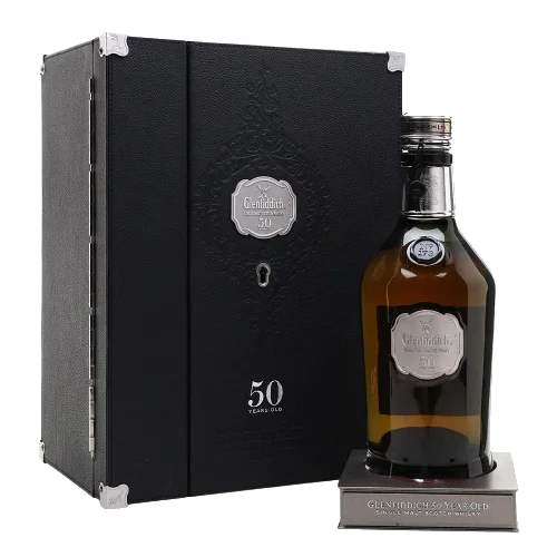 格蘭菲迪50年單一麥芽威士忌出自蘇格蘭Speyside產區,經過長達50年的熟成,展現品牌對時間與工藝的極致追求。其香氣細緻且複雜,包含玫瑰花瓣、紫羅蘭、綠煙草葉與橡木淡煙,入口則為橘子果醬、香草太妃糖層次,餘韻極長帶出乾橡木與微煙氣息。這款酒款由極少數橡木桶出品、限量發布,是頂級收藏與頂尖品飲兼備的珍稀版本。