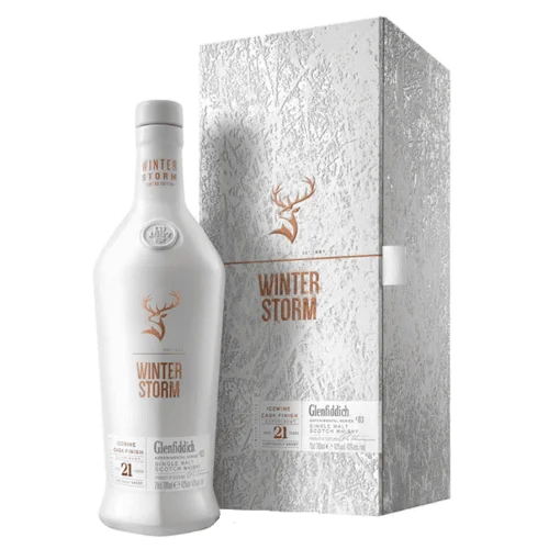 格蘭菲迪 Age of Discovery 系列「Winter Storm」21 年單一麥芽威士忌(The Glenfiddich 21 Years Old Winter Storm)採用加拿大冰酒桶(Ice Wine Casks)完成熟成,是品牌實驗系列中的創新之作。其酒體帶有熱帶水果風味、香草甘甜與冰酒桶帶來的酒香層次,餘韻乾爽、結構清晰。來自蘇格蘭 Speyside 產區,為追求獨特桶型體驗的威士忌愛好者推薦選擇。