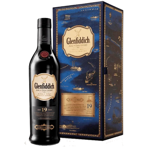 格蘭菲迪 “Age of Discovery 19 Years Old Bourbon Cask Finish” 為數位旅售限量款,出自蘇格蘭斯佩賽(Speyside)產區,採用100% 美國波本桶(American bourbon casks)熟成19 年,酒精濃度為40%。其風味以「太妃糖、香草荳蔻、熟橙果醬」為主,並帶有細緻橡木單寧與暖香料層次。此款為品牌探險系列(Age of Discovery)中少見波本桶專屬版本,適合對橡木與甜香風格偏好的單一麥芽愛好者。