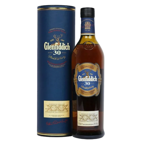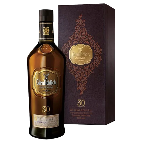 格蘭菲迪 30 年單一麥芽威士忌(The Glenfiddich 30 Year Old)出自蘇格蘭 Speyside 產區,經過至少30年的熟成,其桶型包括西班牙 Oloroso 雪莉桶與美國波本桶的組合。該款酒液呈現深金色至蜜糖色調,風味涵蓋無花果、黑巧克力、烤橡木、熱帶果香與豐富花蜜香氣。酒款為品牌高階系列,特別適合品飲亦具收藏價值。