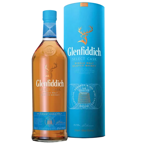 格蘭菲迪特選桶單一麥芽威士忌Glenfiddich Select Cask是針對免稅市場推出的獨家酒款,選用多種歐洲橡木桶、美國橡木桶及前波本桶進行融合熟成,展現出香草、果乾與橡木香氣的細緻平衡風味。此款威士忌以Solera桶工藝強化酒體複雜度,風格清新且層次豐富,適合日常飲用或初階收藏。由於其市場通路有限,逐漸成為具有收藏價值的實惠型單一麥芽威士忌。