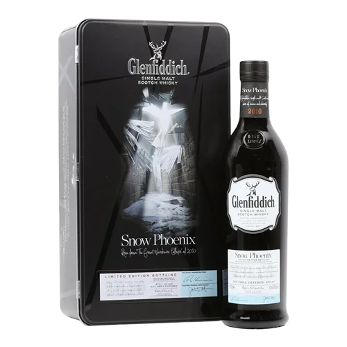 格蘭菲迪雪鳳凰單一麥芽威士忌Snow Phoenix是為紀念2010年雪災導致熟成倉頂坍塌事件而限量釋出的紀念酒款,融合多種不同年份及桶型的格蘭菲迪威士忌,呈現出烘烤蘋果、蜂蜜與黑巧克力的豐富風味。此款酒不僅象徵重生與堅韌,更因限量釋出而具備極高收藏價值。其背後的故事與獨特的風味配置,使Snow Phoenix成為全球威士忌收藏圈中極具話題與投資潛力的傳奇之作。
