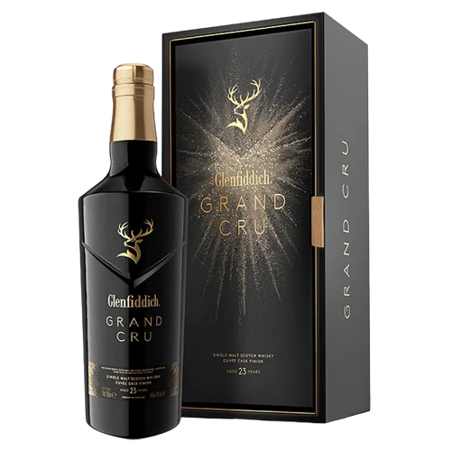 格蘭菲迪23年法國葡萄酒桶Grand Cru是斯貝賽產區極具特色的單一麥芽威士忌,特別在陳年後採用曾裝填法國香檳區Grand Cru葡萄酒的橡木桶進行熟成,帶出優雅的白花香、奶油香草與蘋果塔等細膩香氣。這款酒結合蘇格蘭釀造技藝與法式奢華風格,外觀設計高貴典雅,深具送禮與收藏價值。其稀有釋出量與高年份設定,使其成為威士忌市場中備受矚目的收藏級酒款。