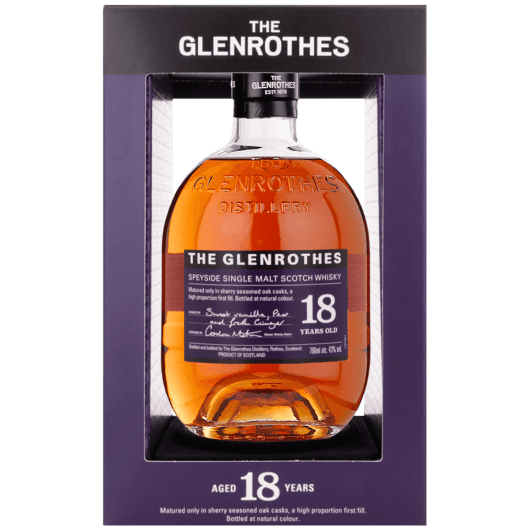 格蘭路思18年為 Berry Bros. & Rudd 接手後推出的高年份常態酒款之一,延續100%雪莉桶熟成傳統,風味集中於果乾、橙皮、黑巧克力與香草辛香,展現更深層次的成熟感。此款代表格蘭路思新時代核心系列的品質高度,亦是高階斯佩賽雪莉桶風格的典範之作。