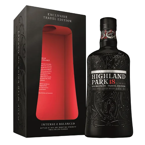 高原騎士18年維京狂潮 Highland Park 18YO Viking Pride-Travel Edition single malt Scotch Whisky為蘇格蘭Orkney島酒廠推出的經典旅遊零售限定版本,延續高原騎士18年系列的優雅風格,並融合維京文化精神於包裝與風味設計。此酒款以雪莉桶熟成為主,帶出蜂蜜、熟果、香草與輕煙燻泥煤等細緻香氣,展現出平衡圓潤的酒體結構。維京狂潮版本為免稅通路專屬,稀有度高,深受旅行者與藏家喜愛,亦為高年份威士忌收購市場中的熱門對象。