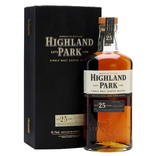 高原騎士25年木盒版 Highland Park 25 years single malt Scotch Whisky為來自蘇格蘭Orkney島頂級酒廠的熟成代表作,採用舊版木盒包裝,設計經典且富有收藏價值。此款威士忌歷經超過二十五年橡木桶熟成,呈現雪莉桶所賦予的深沉果乾香氣、太妃糖、橡木辛香與優雅煙燻泥煤等多層次風味。木盒版本已停止生產,市場存量極為稀有,因而在高端威士忌收購市場中備受追捧,是收藏與投資雙重價值兼具的珍品。