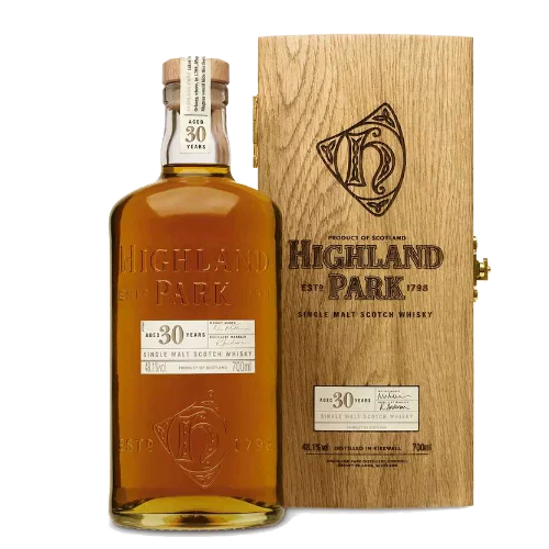 高原騎士30年(木盒舊版) Highland Park 30 years single malt Scotch Whisky為蘇格蘭Orkney島經典酒廠所推出的珍稀熟成酒款,採用早期木盒包裝設計,極具辨識度與收藏價值。此款威士忌經過長時間橡木桶陳釀,展現雪莉桶帶來的深邃乾果香氣、橡木香料與輕柔煙燻風味,兼具力量與優雅。因木盒版本已停止生產,市場存量稀少,特別受到高端收藏家與投資者青睞,是威士忌收購市場中的搶手標的。