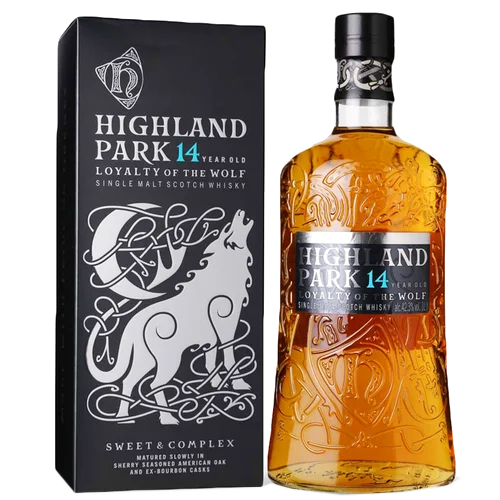 高原騎士 14年蒼狼 Highland Park 14 YO Loyalty of the Wolf Single Malt Whisky為蘇格蘭Orkney島Highland Park酒廠打造的14年熟成單一麥芽威士忌,為免稅市場(Travel Retail)特色款之一,以象徵維京精神中「狼」的特質命名,展現品牌故事與風味個性。酒款採用雪莉酒潤桶的美國橡木桶與波本桶混合熟成,造就香甜與辛香的平衡層次,其香氣呈現香草蛋糕、烤蘋果、肉桂與輕柔泥煤煙燻等複雜風味。此款威士忌以其文化主題、精緻風味與代表性14年陳年特性,在高端威士忌收藏與收購市場中具備良好關注度與流通價值。
