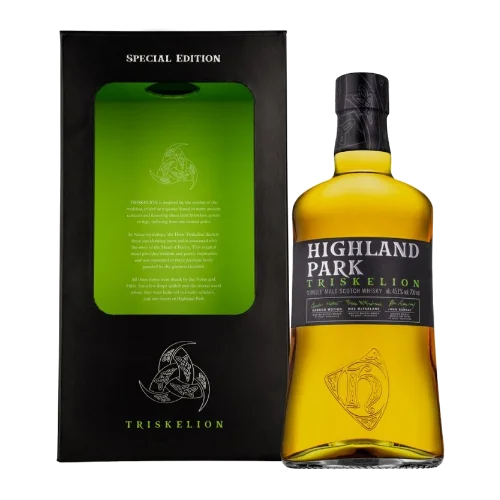 高原騎士 奧丁之角 Highland Park Triskelion Single Malt Whisky為蘇格蘭奧克尼群島Highland Park酒廠特別限量版單一麥芽威士忌,由三位資深釀酒大師合作融合不同橡木桶風味打造,展現雪莉桶與波本桶共同熟成的豐富層次。此酒款香氣帶有橙皮、葡萄乾、杏桃、蜂蜜與香料煙燻等複雜特徵,酒體飽滿且平衡,象徵北歐神話中的智慧與靈感符號「Triskelion」。因為其限量特色與獨特創作背景,使高原騎士奧丁之角在威士忌收藏與收購市場上備受關注。