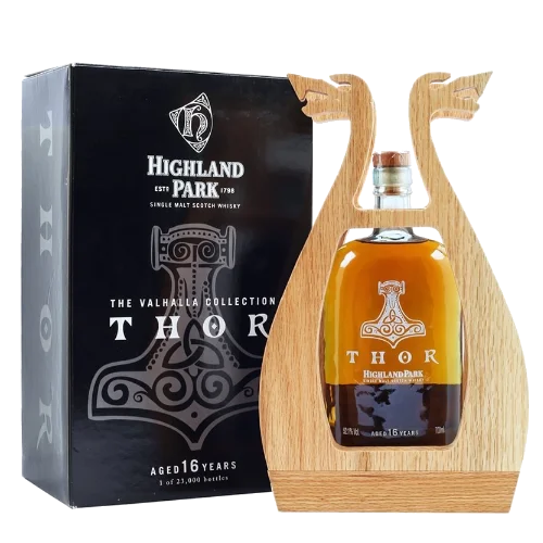 高原騎士 雷神索爾 Highland Park Thor 16 Year Old Single Malt Scotch Whisky 是蘇格蘭奧克尼群島(Orkney)高原騎士酒廠以北歐神話中的雷神索爾(Thor) 為靈感打造的限量 16 年單一麥芽威士忌,屬於其 Valhalla 英靈神殿系列 作品之一。此款威士忌經 16 年橡木桶熟成,揉合雪莉桶與泥煤的深邃性格,凸顯辛香料與果香層次,酒體豐富濃郁且餘韻悠長。高原騎士雷神索爾在威士忌品飲與收藏市場備受讚譽,其風味特色兼具煙燻、果香與香草甜美的平衡魅力。
