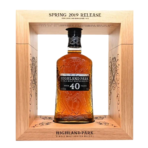 高原騎士40年2019版單一麥芽威士忌 Highland Park 40 Year Old Spring 2019 Release 是蘇格蘭 奧克尼群島 (Orkney Islands) 高原騎士酒廠推出的 超長陳年珍稀單一麥芽威士忌,以極低產量與卓越風味著稱。這款 40 年陳年酒款源自 1979 年之前下桶的五個再裝桶原酒,經過精心重裝入 首-fill 雪莉桶 (first-fill sherry seasoned American oak) 進一步熟成至 2019 裝瓶,展現出濃厚雪莉甜香與平衡煙燻層次的複雜風味。該酒款在全球高端威士忌市場中具 極高收藏與投資性,在老酒藏家與拍賣平台上備受追捧。