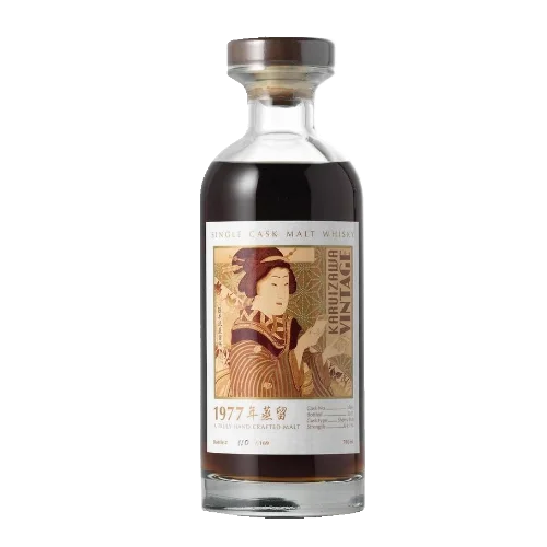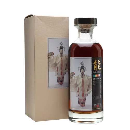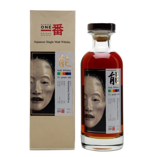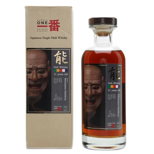 「輕井澤 能系列 31年 Karuizawa Noh 31 Year Old Cask」為日本已停產酒廠 輕井澤(Karuizawa)所推出的極為稀有單桶長熟年份酒款,蒸餾於1981年、熟成超過31年,採用雪莉桶陳年並限量裝瓶,融合深厚雪莉桶果乾風味與黑巧克力、皮革與香料層次,為能系列中極具代表性且具高度收藏價值的珍稀逸品。